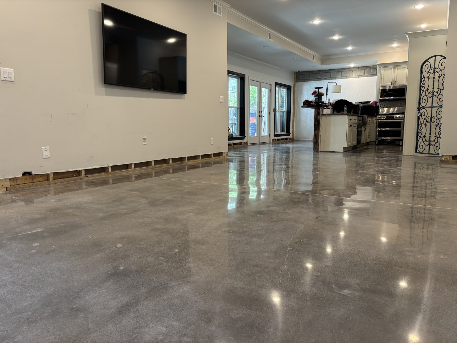 Residential polished concrete is an ideal flooring option for homeowners seeking strength, style, and simplicity. Unlike traditional flooring materials, polished concrete resists stains, moisture, and everyday wear without the need for constant maintenance. It’s perfect for garages, basements, kitchens, living areas, and other high-traffic spaces throughout your home. With finish options ranging from matte to high-gloss, polished concrete can be customized to match your design preferences while delivering a seamless surface built to last. In addition to its durability, polished concrete improves indoor air quality and offers a long lifespan that adds lasting value to your property.